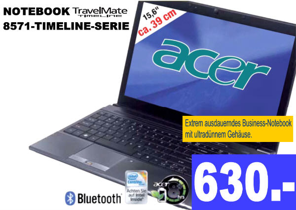 3 GB DDR-2 RAM Hauptspeicher 250 GB S-ATA Festplatte 15,6” WXGA-HD TFT-Display mit LED-Backlight (1.366 x 768) Intel GS45 mit Intel GMA 4500 MHD Grafik DVD-SuperMulti-Double-Layer-Brenner